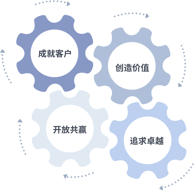 成就客户是一切决策的出发点,创造价值是衡量所有工作的标准,追求卓越是南宫28做事做人的态度,开放共赢是南宫28的格局也是最终的结果。价值观的齿轮环环相扣,推动着组织里的每个人不断向前。